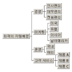 이 전형적인 적용 예는 임무의 상대적 중요도, 각 임무의 목표, 그리고 각 사원 그룹의 행동이 임무와 목표에 기여하는 정도 등을 고려하면서 어떻게 합리적으로 인력자원을 할당할 수 있는지를 보여 준다. Ratings Mode를 활용하고 있다...